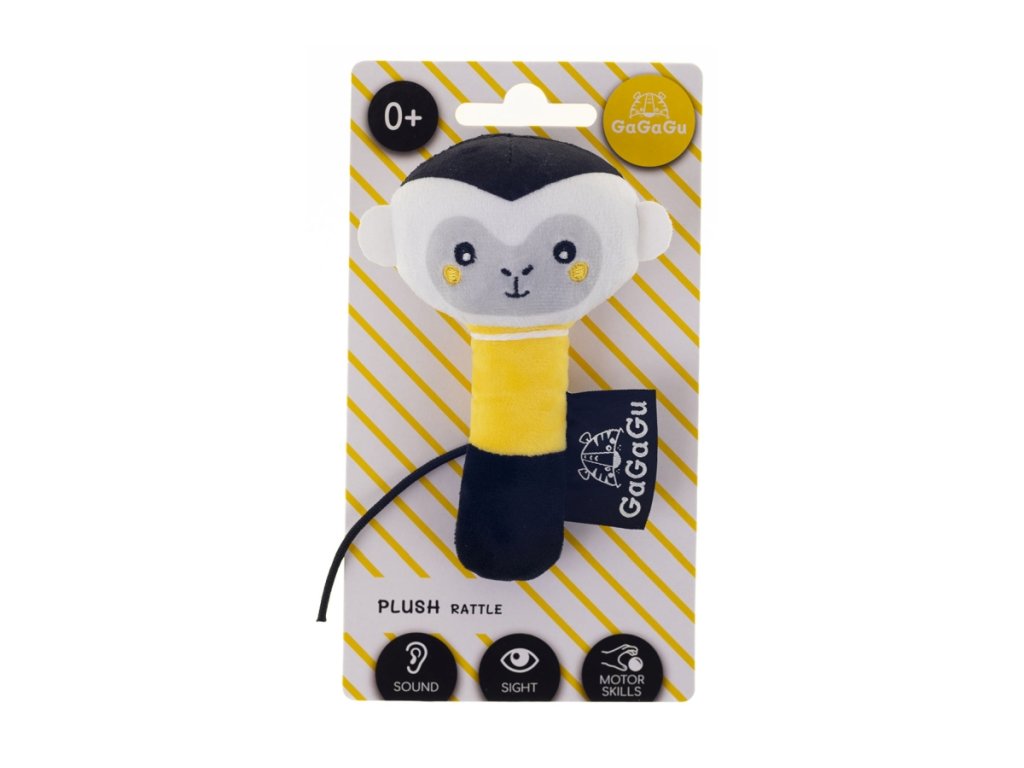 Chrastítko GAGAGU s opičkou je ideální hračkou pro nejmenší děti. Jeho zajímavý design a barvy v odstínech bílé, žluté a černé přitahují pozornost a probouzejí zvědavost batolat. Díky použití bezpečných materiálů je chrastítko zcela bezpečné pro děti od prvního dne života.Hračka byla navržena tak, aby podporovala rozvoj motorických dovedností dítěte, a její tvar a textura ji předurčují k uchopení. Měkký, na dotek příjemný plyš dělá chrastítko nejen funkčním, ale i pohodlným na hraní. Věk 0+Doplňkové parametry