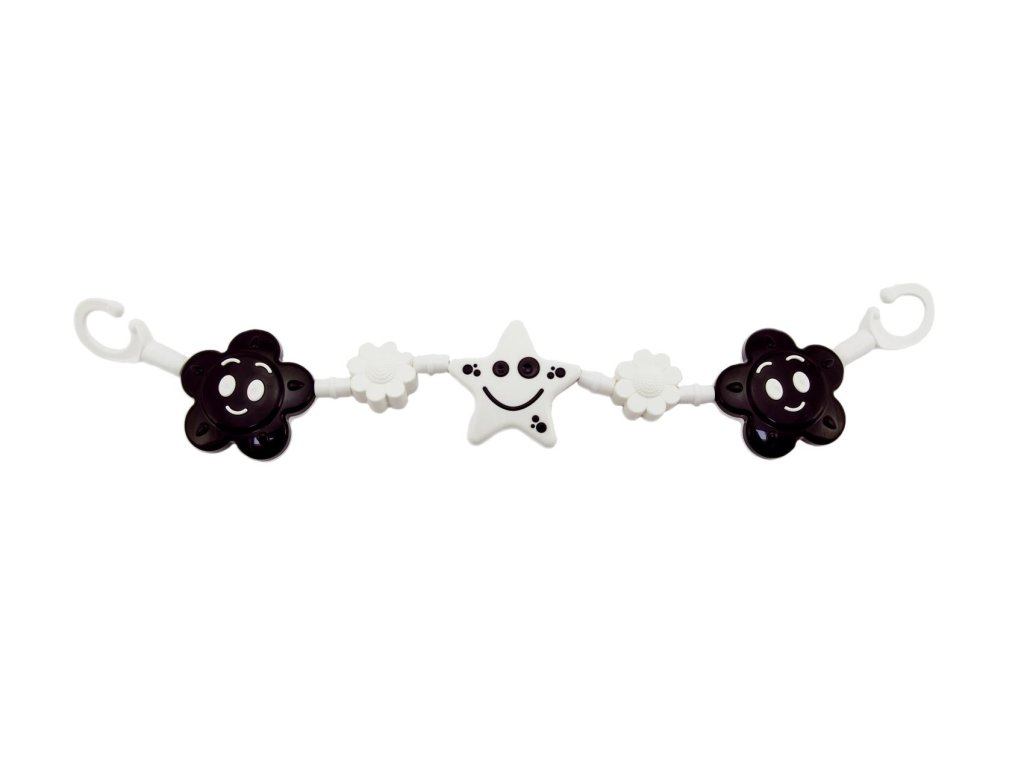 Kontrastní hračky plast chrastítko, kousátko, zábrana na kočárek v krabičce 15x18x6cm 0m+