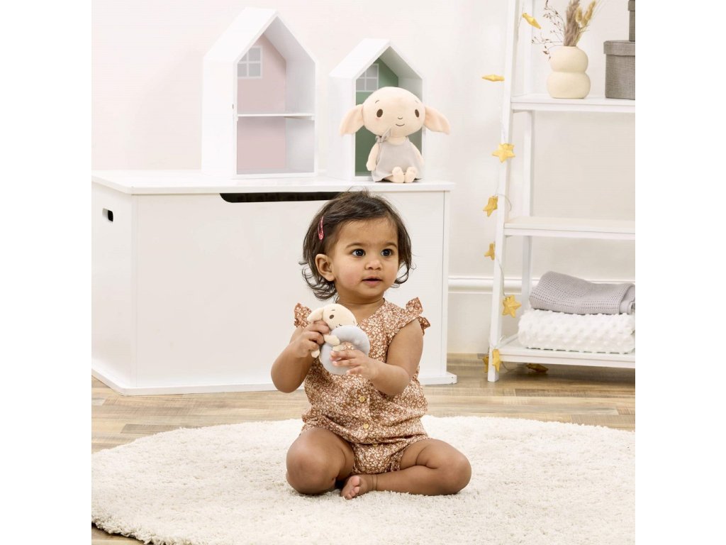 Objevte kouzelný svět Harryho Pottera s chrastítkem v motivu jeho malého přítele Dobbyho. Chrastítko je vyrobeno z velmi kvalitního plyše a má perfektní velikost pro malé ručičky. Chrastítko se skřítkem Dobbym vydává jemný chrastící zvuk, který upoutá pozornost každého dítěte. Podporuje raný vývoj smyslů, je to skvělý společník pro hraní a přináší dotek Dobbyho kouzla při dobrodružstvích na cestách.