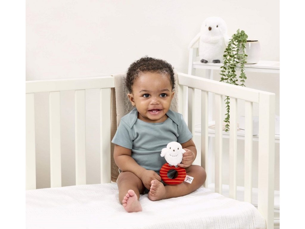 Objevte kouzelný svět Harryho Pottera s tímto měkoučkým chrastítkem sovy Hedviky. Chrastítko je vyrobeno z velmi kvalitního plyše a má perfektní velikost pro malé ručičky. Chrastítko s Hedvikou vydává jemný chrastící zvuk, který upoutá pozornost každého dítěte. Podporuje raný vývoj smyslů, je to skvělý společník pro hraní a přináší dotek kouzla při dobrodružstvích na cestách.