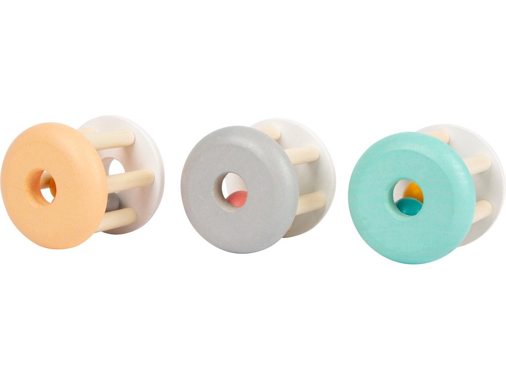Odkud slyším to krásné chrastění? Toto dětské dřevěné chrastítko má velikost tak akorát pro dětské ruce. Můžete si vybrat oranžové, šedé nebo tyrkysové. Do chrastítka jde vidět z boku i vrchu, takže jej děti mohou prozkoumat. Chrastítko trénuje motoriku dětí a také jejich vjemy.