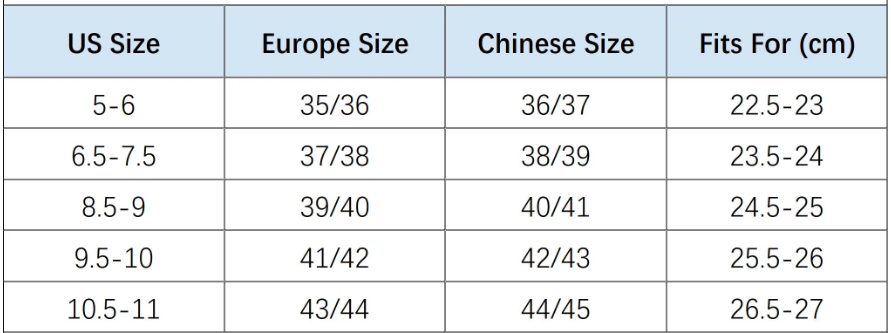 Poznámka: K délce chodidla se doporučuje připočíst tzv. nadměrek 1-1,5 cm. Doporučujeme stélku změřit nebo vzít o číslo větší, než běžně nosíte. Ideálně vyndat vložku z bot, a tu přeměřit. Nebo můžete nohu přiložit k rovné zdi, změřit po paleček a k této délce připočíst 1-1,5 cm. Čínské velikosti jsou o něco menší než v Evropě.