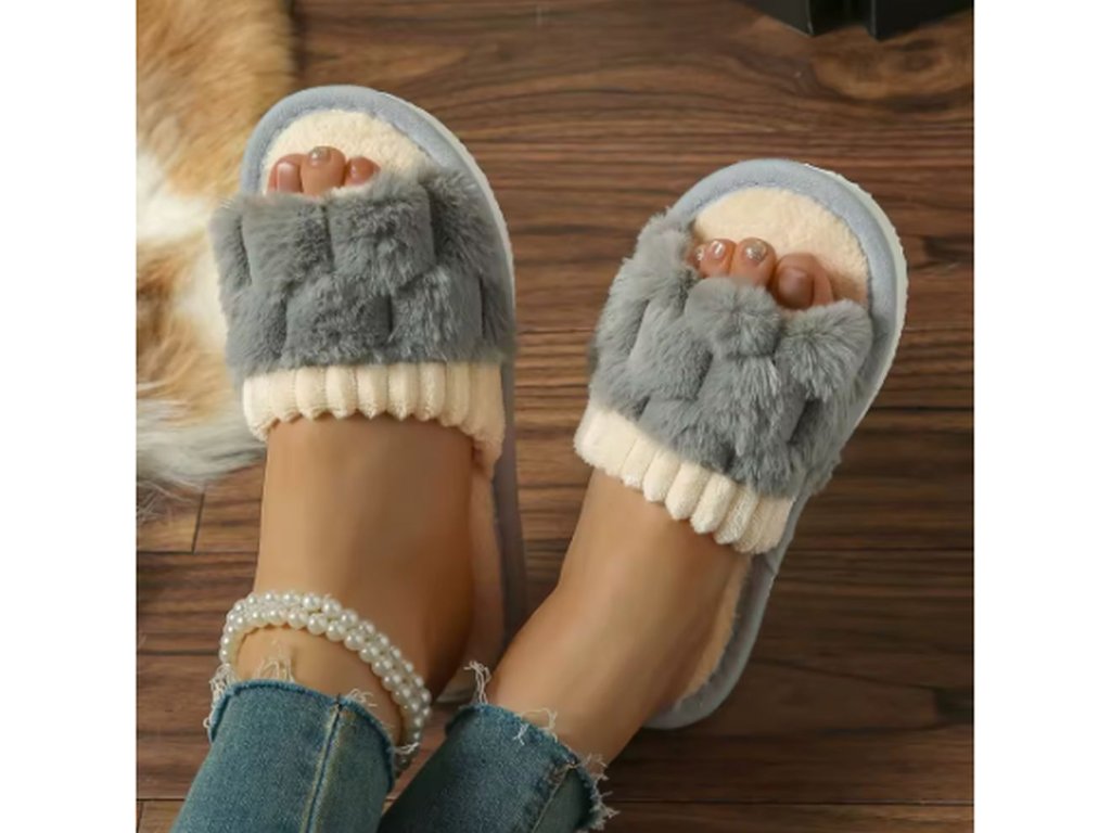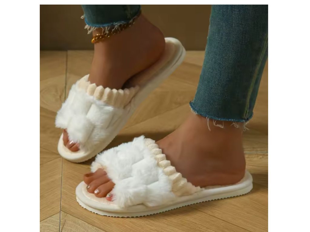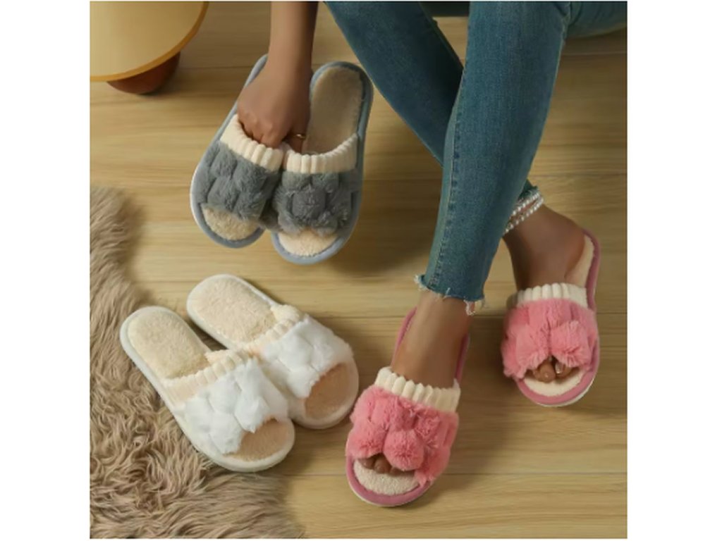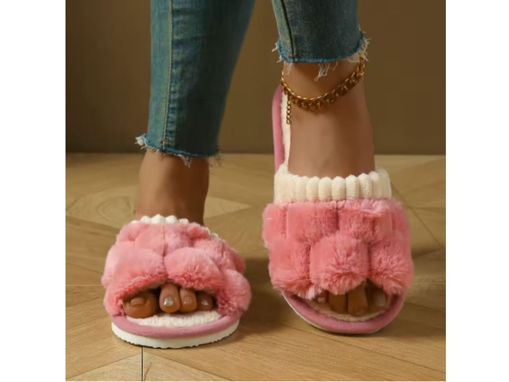Dámské zimní kožešinové pantofle - šedé, bílé, růžové