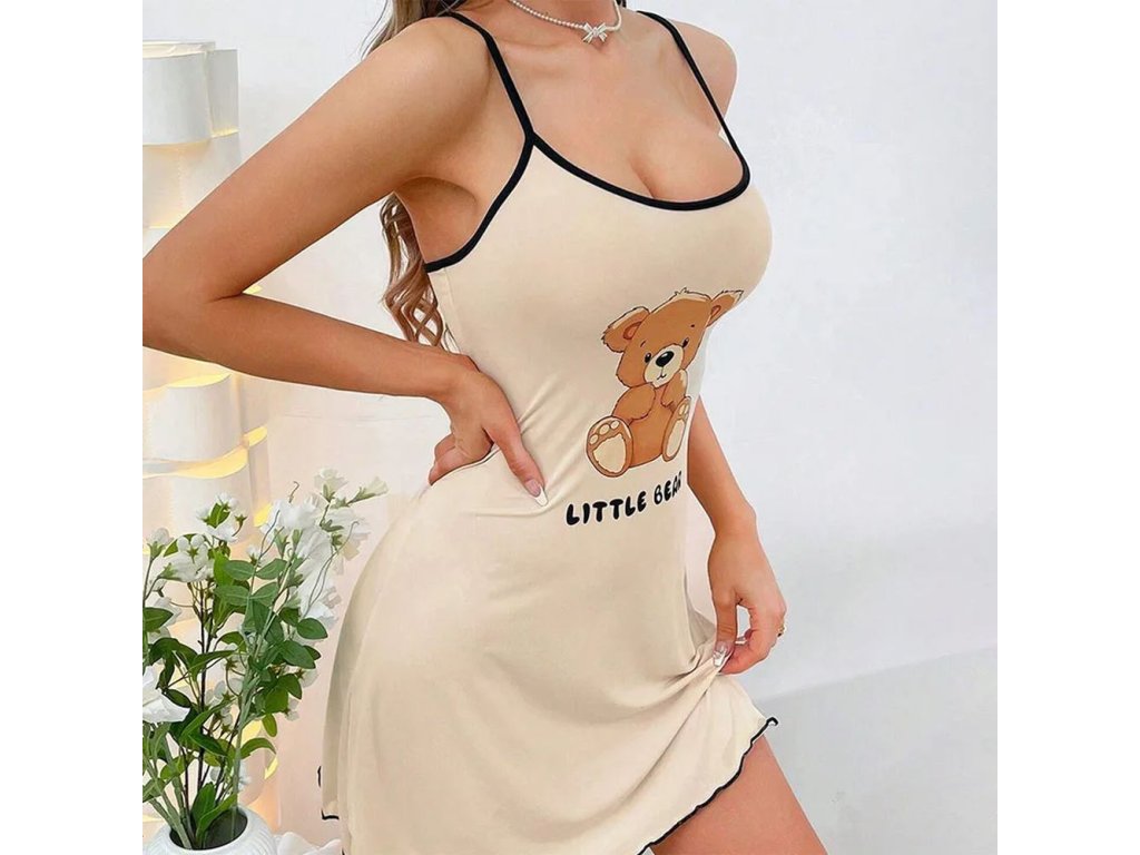 Dámská noční košilka s úzkými ramínky "Little Bear" -meruňková, modrá