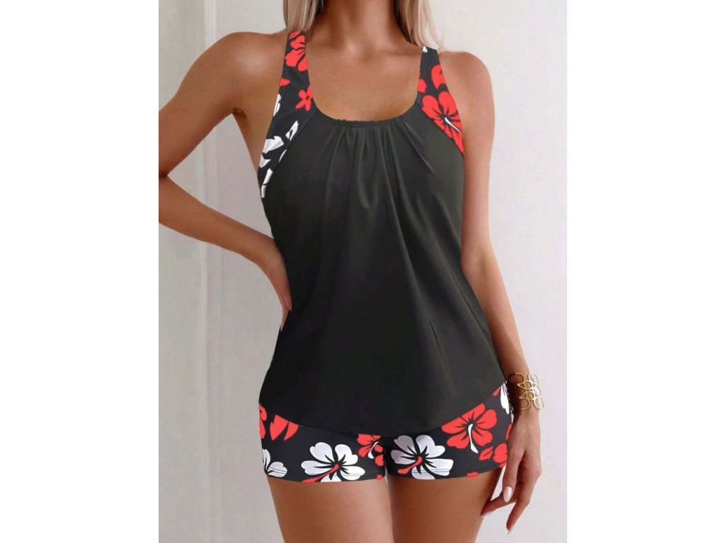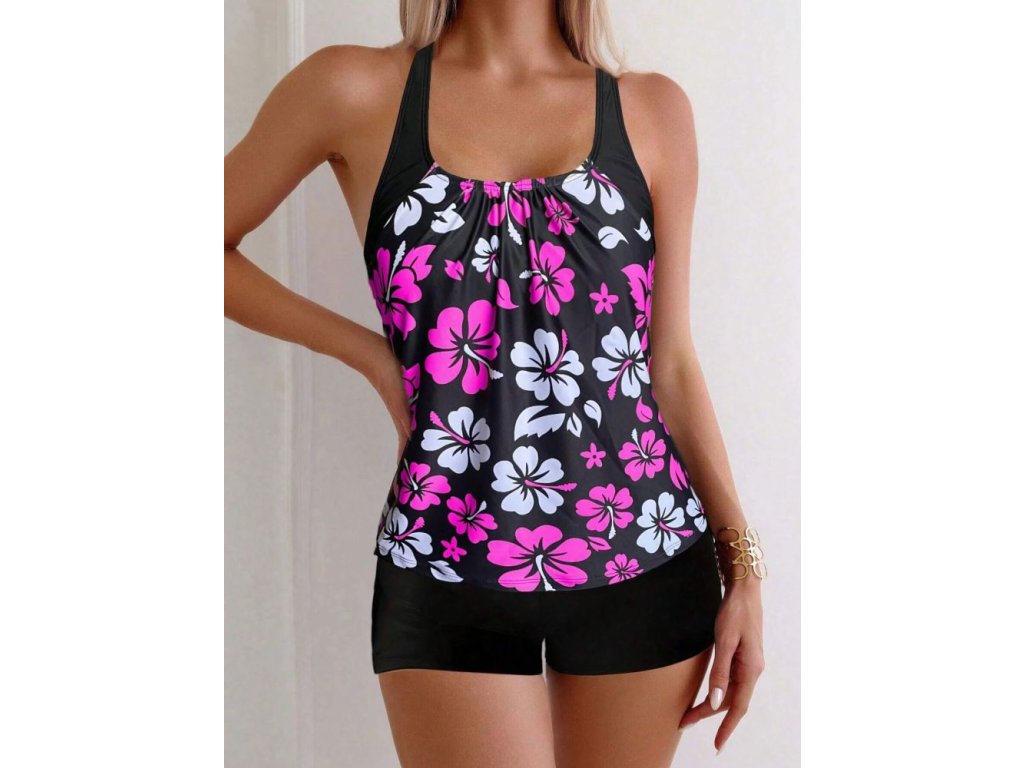 Dámské dvoudílné plavky - tankiny s potiskem květin