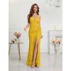Elegantní dlouhé společenské šaty s flitry a rozparkem