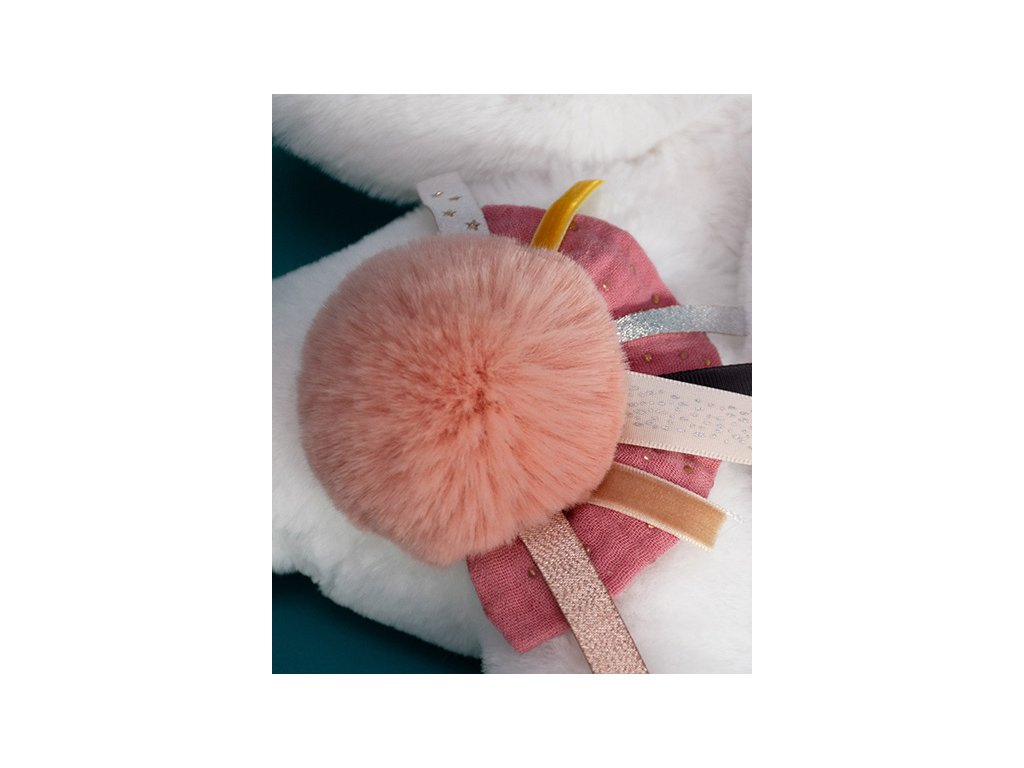 Tento králíček může být kamarád, polštářek, nebo také výzdoba dětského pokoje. Je extrémně měkký, stylový s bambulí v tmavě růžové barvě a efektním šátkem kolem krku. Praktická hračka na hraní doma nebo procházku. Pro miminko bude mít především uklidňující efekt. Díky jemným harmoniím trendy barev, směsím velmi jemných materiálů bude tato hračka lákat malé i větší děti. Ideální také jako dárek. Údržba: Perte v lázni na 30°, aby si zachoval svou hebkost. Přirozené nebo nízkoteplotní sušení. Hlavní vlastnosti: měkký plyš, prémiový materiálv souladu s evropskými normami CEkamarád, polštářek, nebo také výzdoba dětského pokojevhodné od narozeníDoplňkové parametry