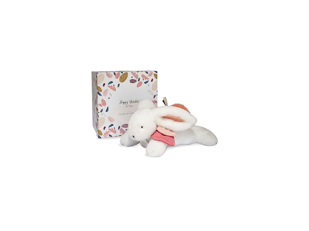 Doudou Dárková sada - Plyšový králíček s tmavě růžovou bambulkou 25 cm