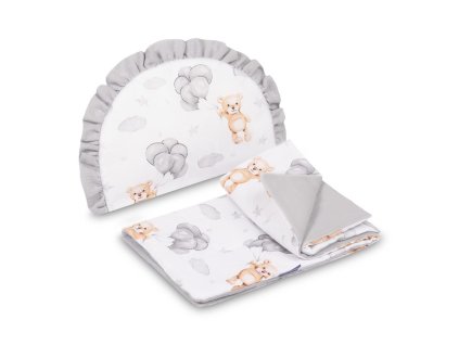 2D sada do kočárku, postýlky, kolébky, mušelín, bavlna, Medvídek, bílá, šedá