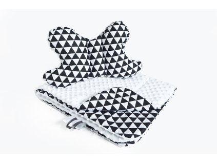 Baby Nellys 2-dílná Sada do kočárku s minky s motýlkem - trojúhelníčky, minky - černá/bílá