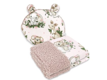 2-dílná sada do kočárku s oušky, bavlna + Beránek 100x70 cm, Skippy - růžová