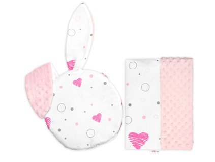 2-dílná sada do kočárku s oušky, bavlna + Beránek 100x70 cm, Skippy - růžová