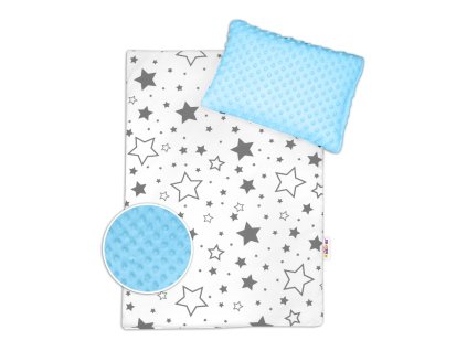 Baby Nellys 2-dílná sada do kočárku s minky - šedé hvězdy a hvězdičky/minky sv. modrá
