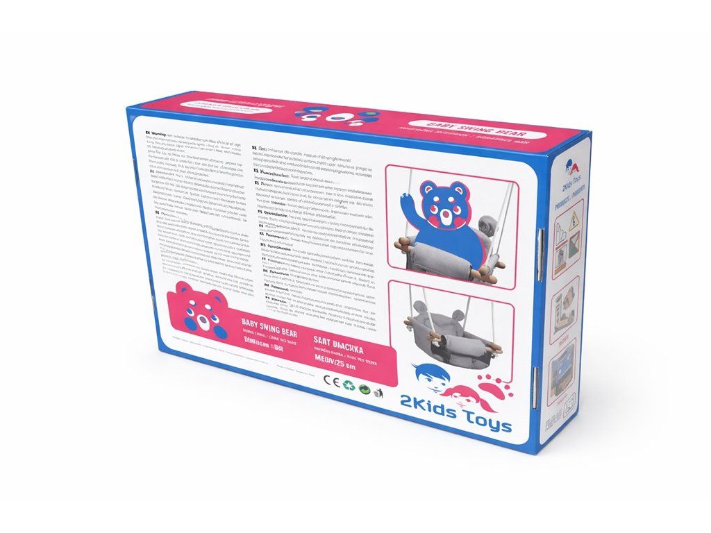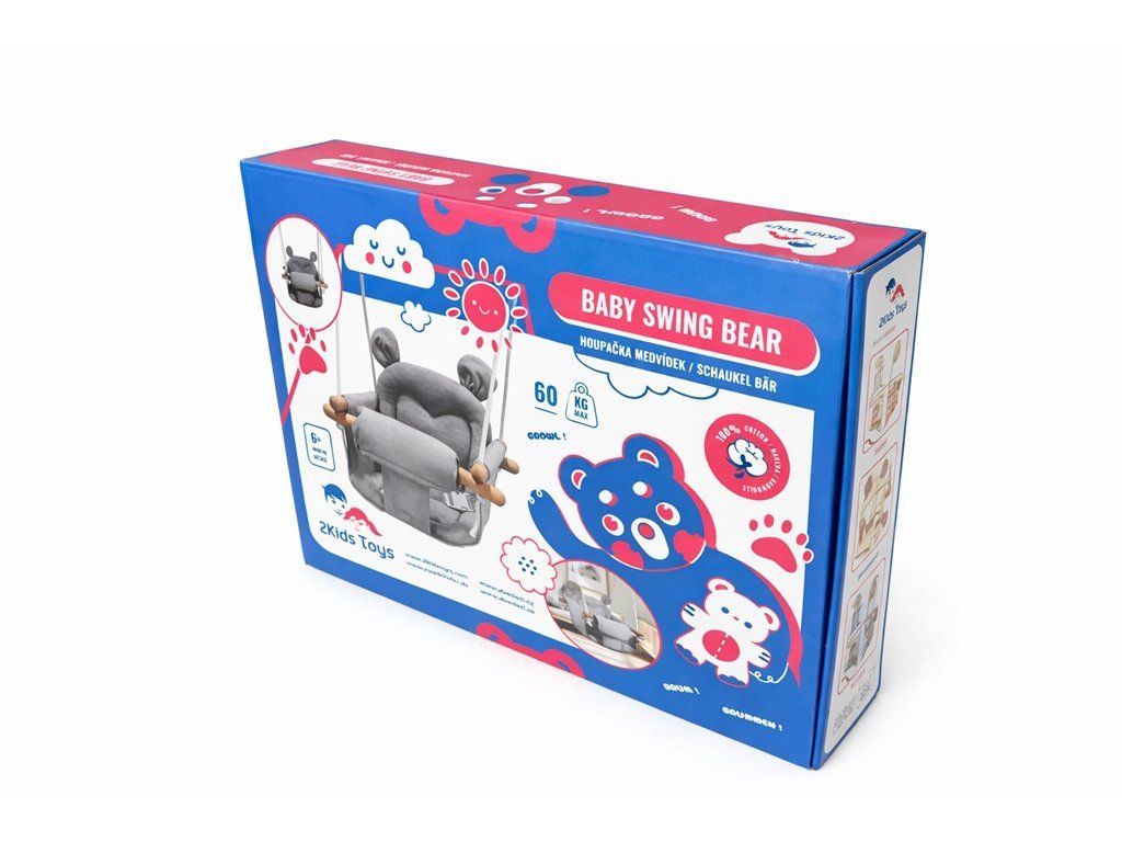 Komfort, bezpečí, zábava... méďa přesně ví co spokojená miminka potřebuje! Tato dětská houpačka nabízí nejen spousty hodin legrace, ale i aktivní odpočinek. Konstrukce z bukového dřeva a sedátko ze 100% bavlny zajišťují plné pohodlí a bezpečnost při houpání. Lana se 2 karabinami jsou výškově nastavitelná (až 180 cm). Konec lan je zakončen plastovou pojistkou proti jejich rozvázání. Díky tlumeným barvám a jednoduchému designu je houpačka také brilantním doplňkem do pokojíku!