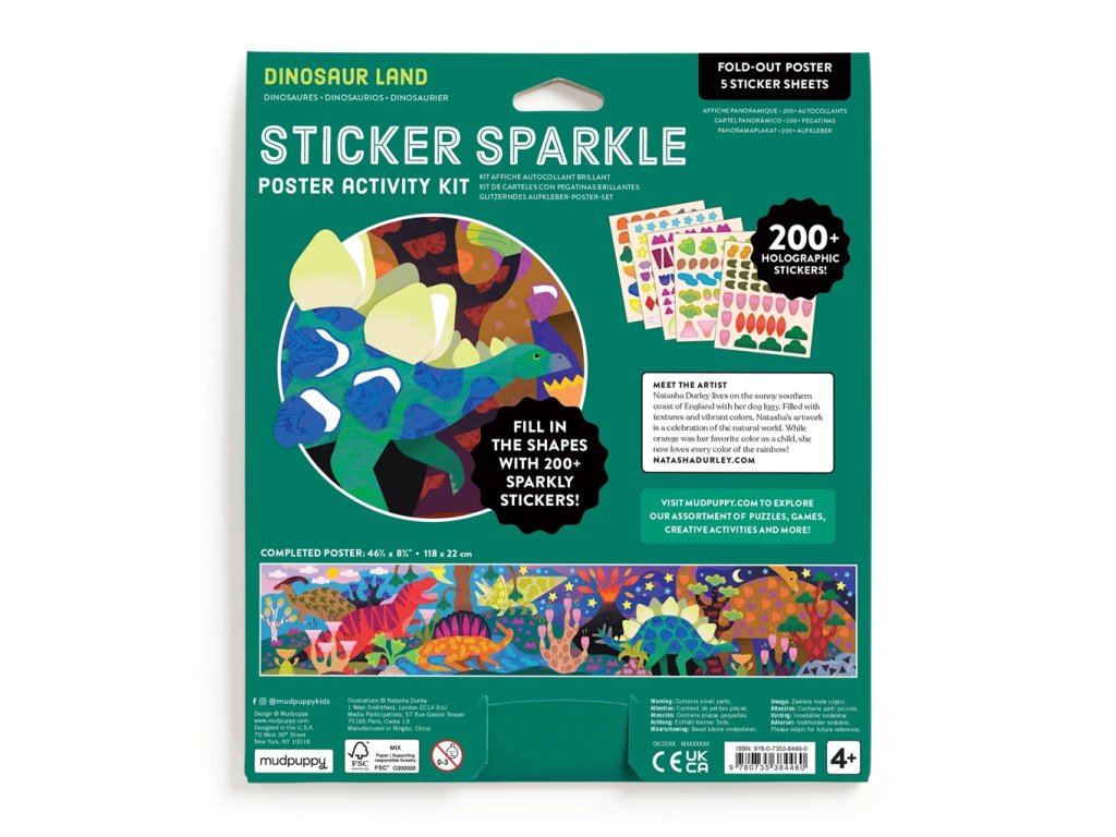 Je interaktivní, zábavná a poskytuje dětem zážitky při hře bez obrazovek a podporuje učení. Rozvíjí dovednosti dětí v různých oblastech včetně koordinace ruka-oko, rozpoznávání barev, vizuálního rozlišování, kreativity a vytrvalosti. Samolepky se snadno odlepují a nalepují, takže i malým ručičkám umožňují tvorbu krásných uměleckých děl. Sada byla vytvořena podle námětu Natashi Durley, umělkyně, která svým dílem oslavuje přírodu a miluje všechny barvy duhy. Vyrobeno převážně z papíru s certifikací FSC® a potištěno rostlinnými barvami. Všechny produkty splňují bezpečnostní předpisy CPSIA, ASTM a CE.