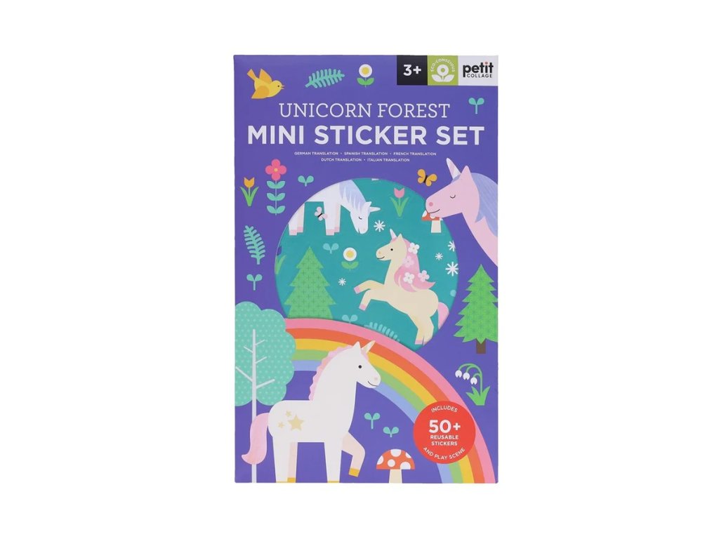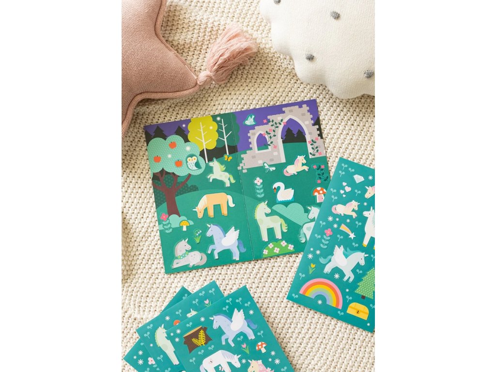 Petit Collage Znovupoužitelné mini samolepky Jednorožci v lese