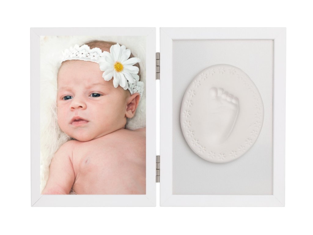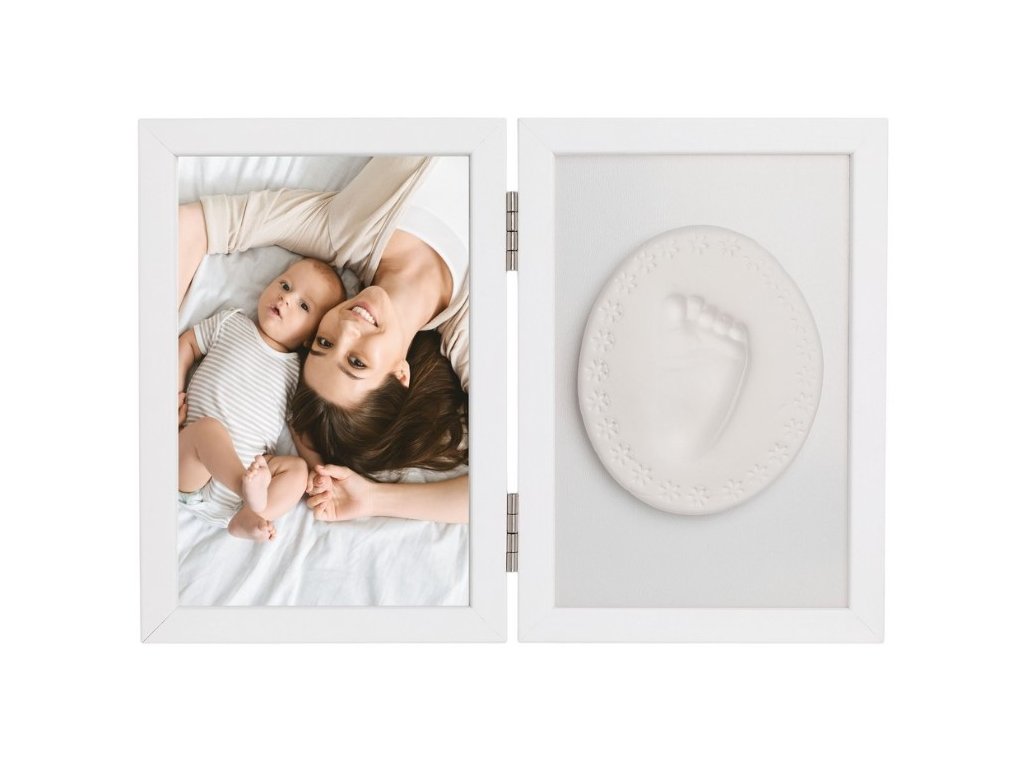 Sada na otisk miminka -dvojitý rámeček s modelínou pro otisk ručičky nebo nožičky, bílý