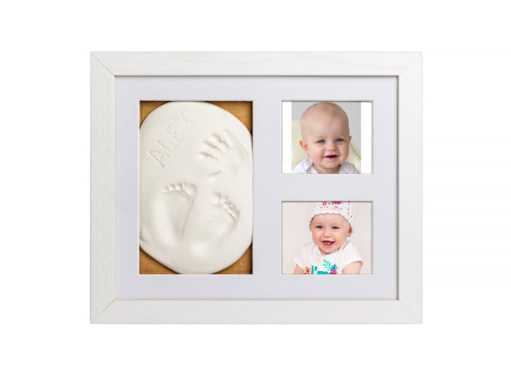 Sada na otisk miminka -dvojitý rámeček s modelínou pro otisk ručičky nebo nožičky, šedý