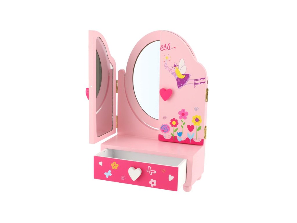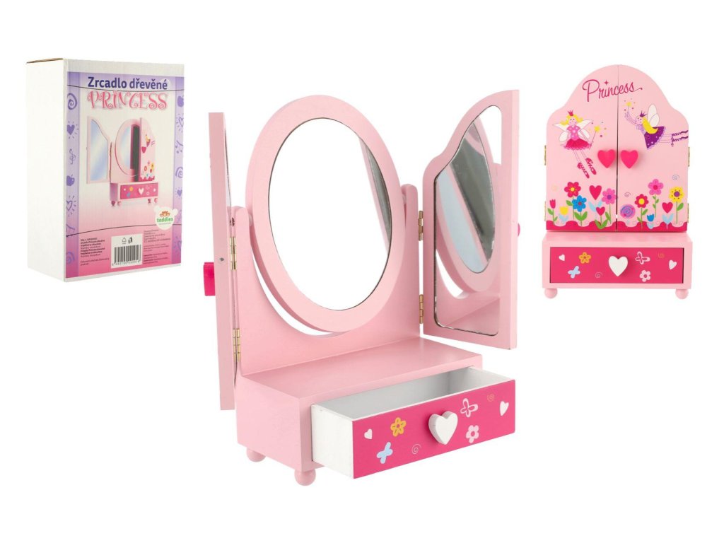 Zrcadlo šperkovnice Princess 3-dílné zásuvka dřevo 16x25x8cm v krabici