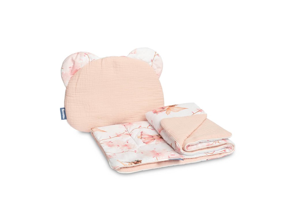 Dětská sada 2D – polštářek a dečka z mušelínu a bavlny.Tato krásná sada polštářku a dečky je vyrobena z jemného mušelínu a 100% bavlny, díky čemuž zajistí vašemu děťátku maximální pohodlí.