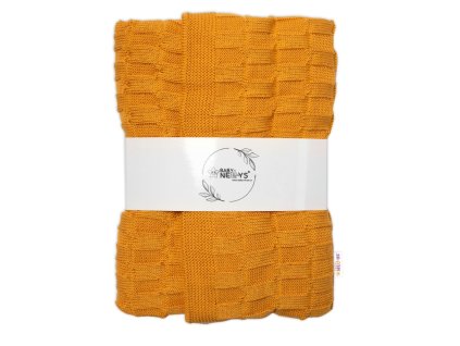 Baby Nellys Luxusní bavlněná pletená deka, dečka CUBE, 80 x 100 cm - hořčicová