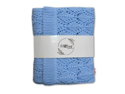 Baby Nellys Luxusní bavlněná háčkovaná deka, dečka LOVE, 75x95cm - světle modrá