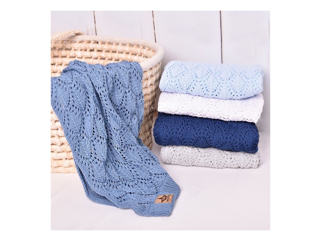 Luxusní bavlněná háčkovaná deka, dečka. ažurková LOVE, 75x95cm - modrá