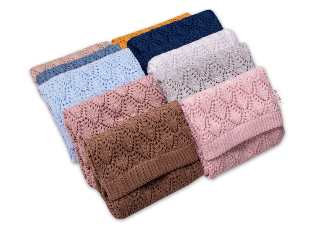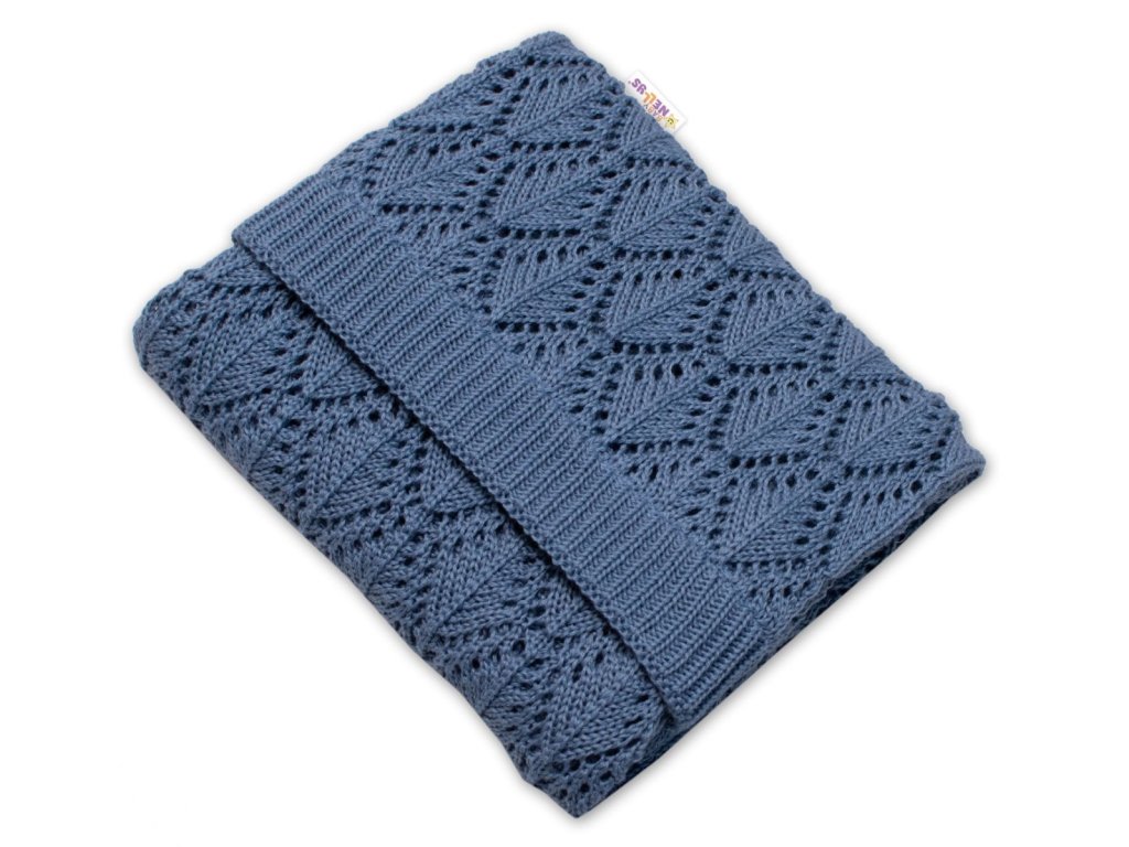 Baby Nellys Luxusní bavlněná háčkovaná deka, dečka LOVE, 75x95cm - jeans
