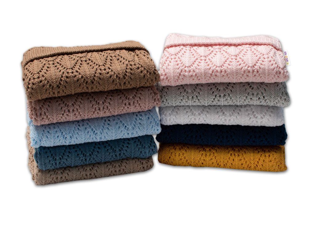 Baby Nellys Luxusní bavlněná pletená deka, dečka CUBE, 80 x 100 cm - hořčicová