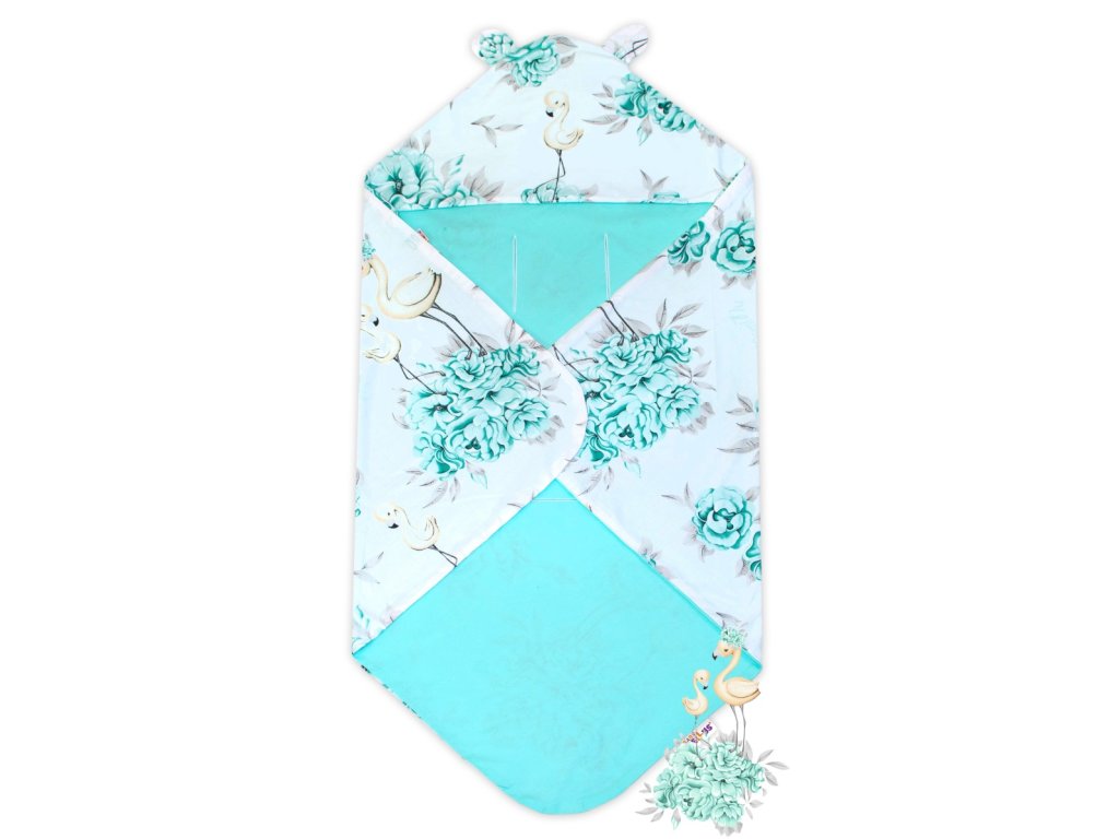 Bavlněná zavinovací deka s kapucí Baby Nellys, Plameňák - mátový