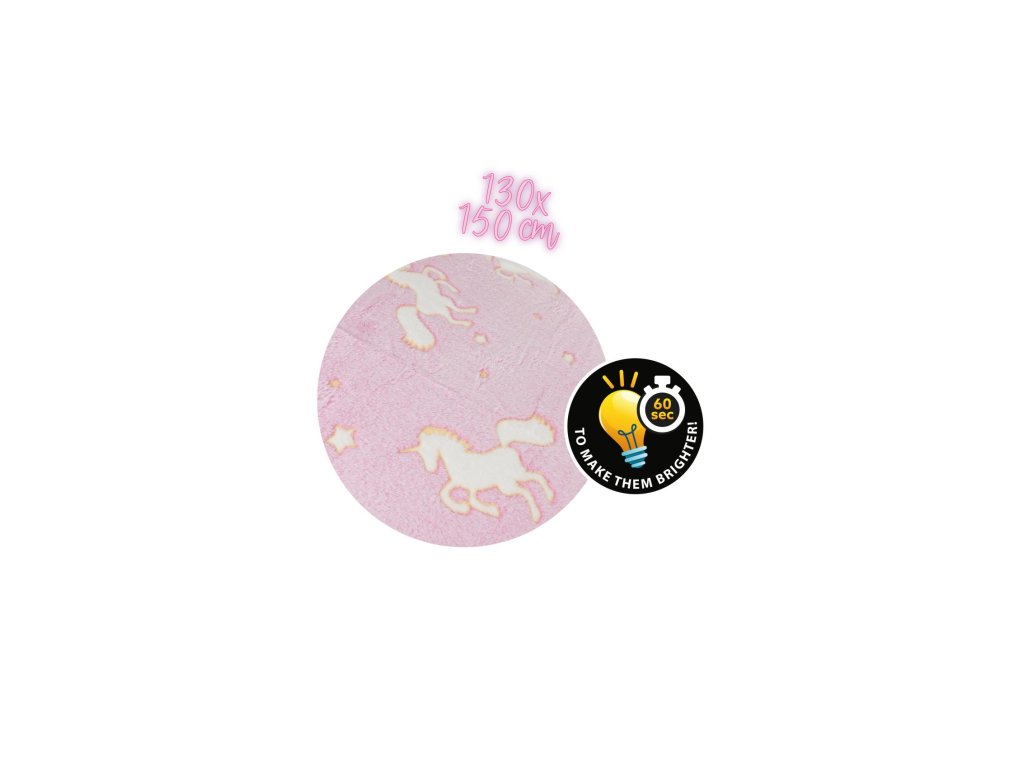 Deka Jednorožec svítící ve tmě plyš 130x150cm růžová