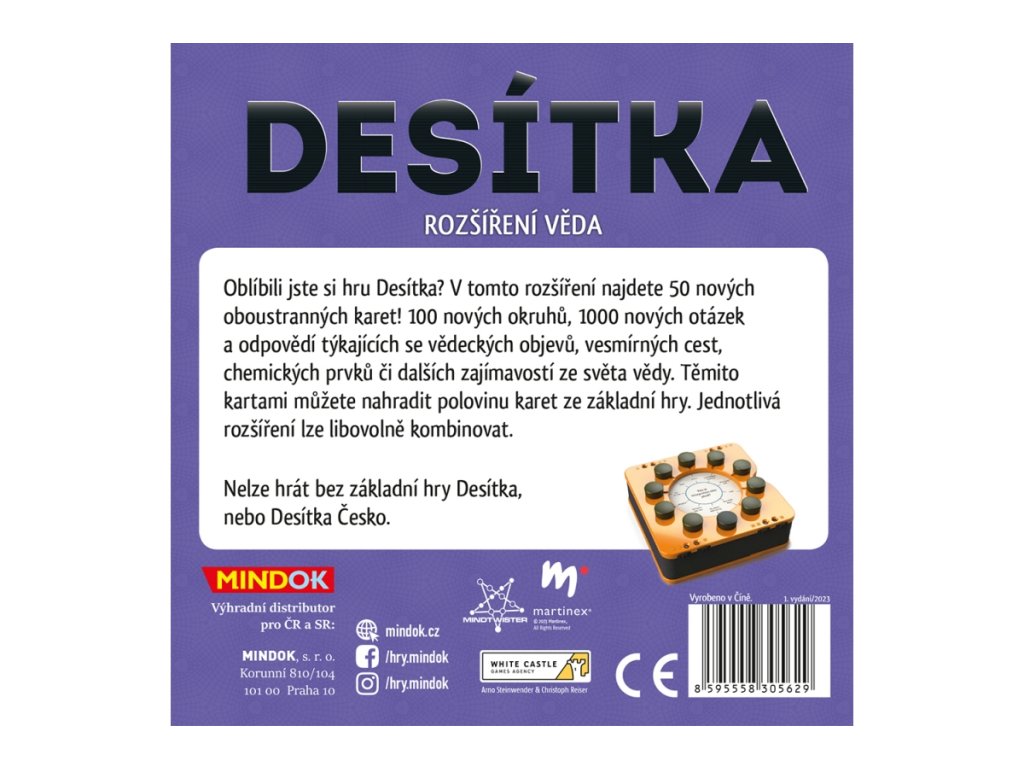 V tomto rozšíření najdete 50 nových oboustranných karet! 100 nových okruhů, 1000 nových otázek a odpovědí týkajících se živočichů, květin, stromů, národních parků či dalších zajímavostí ze světa přírody. Těmito kartami můžete nahradit polovinu karet ze základní hry. Jednotlivá rozšíření lze libovolně kombinovat.Nelze hrát bez základní hry Desítka, nebo Desítka Česko.Věk 12+Doplňkové parametry