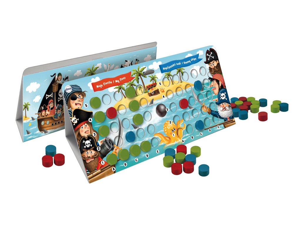 Originální rodinná hra pro děti i dospělé. Tato námořní bitva je epickou strategickou hrou pro dva až 6 hráčů, která přináší dobrodružství a taktiku na Váš stůl. V této pirátské námořní bitvě je vaším úkolem zničit nepřátelskou flotilu dříve, než jsou všechny Vaše lodě potopeny. V roli kapitána musíte připravit svoji bitevní strategii a dovést své námořníky k vítězství! Nasaďte flotilu, naplánujte svůj útok a bitva může začít. Tahle hra je nejen vizuálně poutavá, ale také nabízí skvělý herní zážitek. Výrobek splňuje požadavky EU na bezpečnost hraček a je vhodný pro děti od 5 let. Hra obsahuje: kartonový herní plán 2kscelkem 144 dílů Hlavní vlastnosti: počet hráčů: 2 - 6doba jedné hry: 20 - 40 minutvýrobek splňuje požadavky EU na bezpečnost hračekvhodný pro děti od 5 letDoplňkové parametry