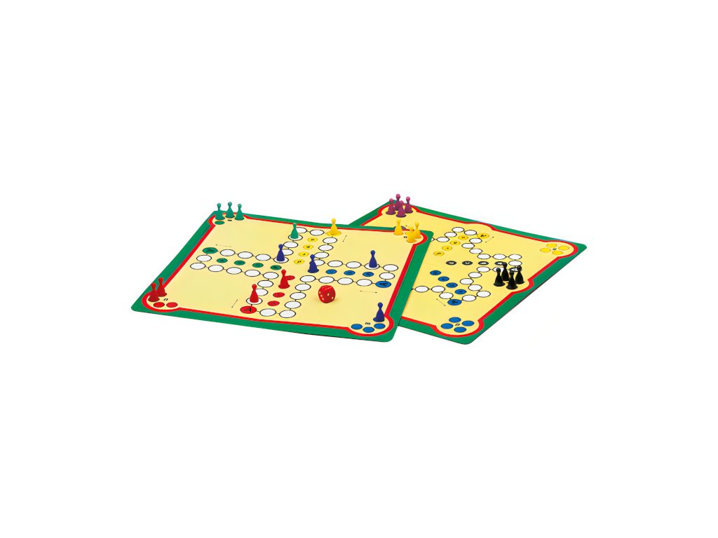 Úkolem každého hráče je projít se svými figurkami po směru šipky na herním plánu celou cestu až na cílová pole, tj. na 4 stejnobarevná pole ve středu herního plánu. Rychlost pohybu určuje počet hozených ok na hrací kostce. Ten, kdo se dostane jako první se všemi figurkami do "domečku", vyhrává. Dnes již klasická desková hra, která nemůže chybět v žádné domácnosti.