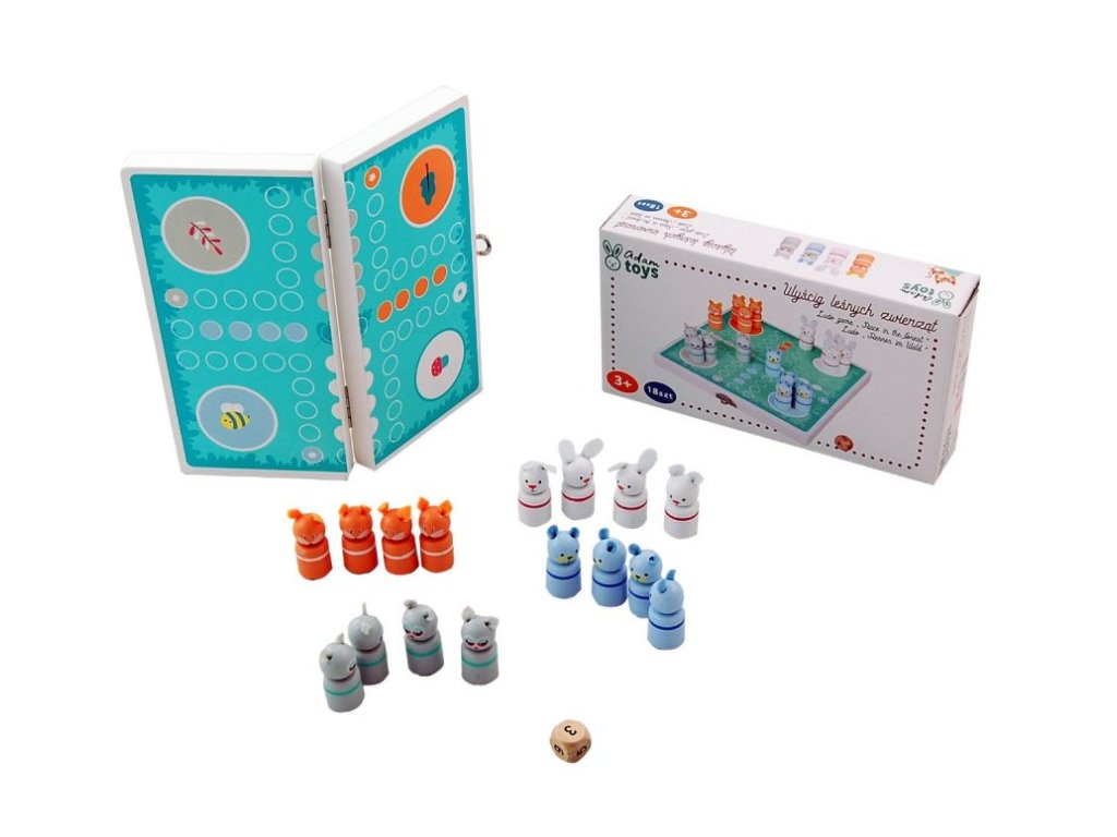 Kostka je označena čísly. Figurky znázorňují lesní zvířátka. Tato hračka je skvělou zábavou pro celou rodinu.