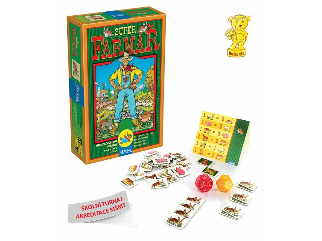 Jako správný superfarmář se zabýváš chovem domácích zvířat, neustále své stádo rozmnožuješ, ale pozor! Stádo obcházejí liška a vlk a tvá zvířata se pro ně mohou stát cennou kořistí… Hra Superfarmář má velmi zajímavou historii. Vznikla již za 2. světové války a jejím tvůrcem je významný matematik Karol Borsuk. Pravidla hry, která se opírají o zásady matematiky a logiky, nutí hráče počítat, předvídat, plánovat a kalkulovat s riziky. Tato jedinečná hra učí děti i rodiče strategickému myšlení.