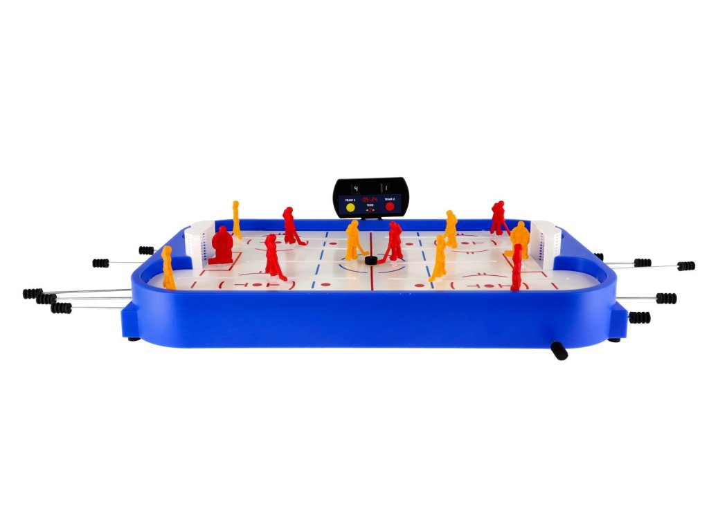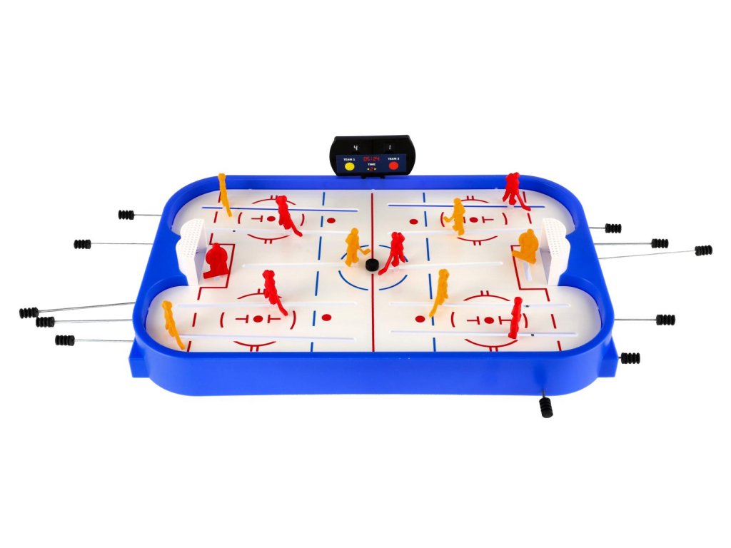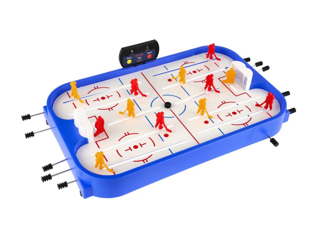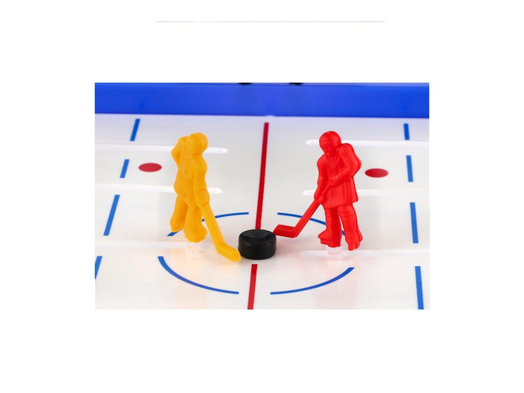 Tento velký plastový stolní hokej je skvělá společenská hra. Základem hokeje je robustní plastové kluziště, které vydrží i tvrdé údery. Kovová táhla. Hokej je společenská hra pro malé i velké. Staň se jedním z profi hráčů a užij si hokej přímo ve vašem obýváku nebo na zahradě spolu s dalšími kamarády.Rozměry balení 54 x 38 x 7 cm.