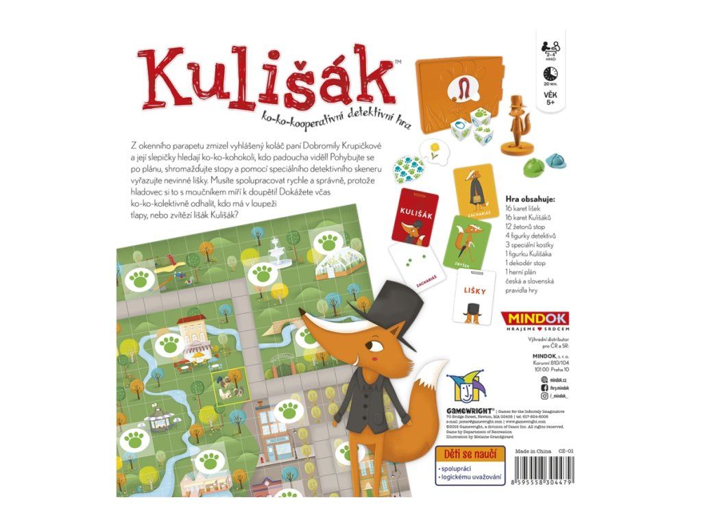 Z okenního parapetu zmizel vyhlášený koláč paní Dobromily Krupičkové a její slepičky hledají ko-ko-kohokoli, kdo padoucha viděl! Pohybujte se po plánu, shromažďujte stopy a pomocí speciálního detektivního skeneru vyřazujte nevinné lišky. Musíte spolupracovat rychle a správně, protože hladovec si to s moučníkem míří k doupěti! Dokážete včas ko-ko-kolektivně odhalit, kdo má v loupeži tlapy, nebo zvítězí lišák Kulišák? Věk 5+Doplňkové parametry