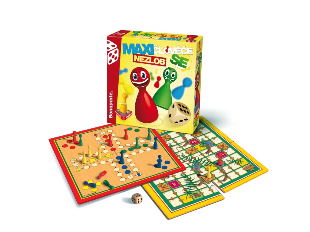 Maxi Člověče, nezlob se/Velké putování společenská hra dřevěné figurky v krabici 30x30x8cm