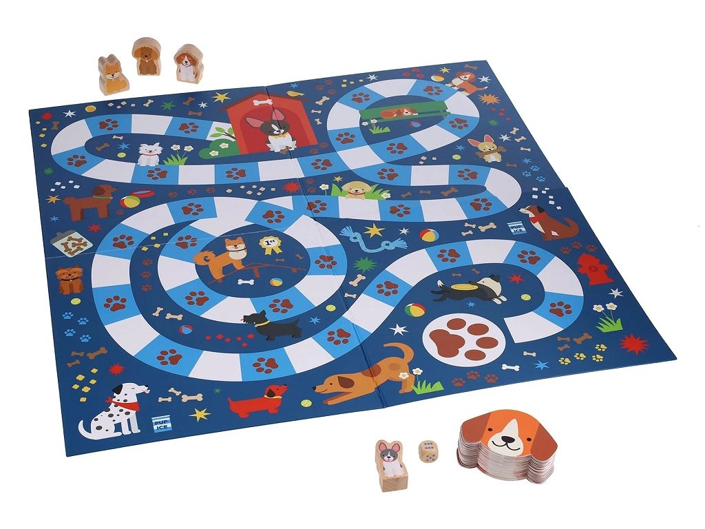 Táto akčná hra o chlpatých štvornohých kamarátoch vás udrží v strehu! Otestujte svoje znalosti o psoch a predveďte všetko, čo súvisí so psom, keď pohybujete svojou psou postavou po hracej ploche. Vieš štekať ako šťastný pes? Dokážeš sa naháňať za chvostom ako šteňa? Buďte prvý, kto dorazí do cieľa. Perfektný pre rodiny, priateľov a milovníkov psov, ale aj pre všetkých fanúšikov doskových hier. Priemerná doba hrania je 20 minút. Hra je vhodnou pomôckou na precvičovanie angličtiny. Doskové hry sú skvelým spôsobom, ako deti naučiť hodnotám trpezlivosti, sústredenia, vyhrávania a prehrávania s gráciou a ako sa hrať s ostatnými. U mladších detí navyše rozvíja pohyb po hracej ploche, koordináciu ruka-oko a zručnosť. Postup hry: hráč, ktorý si naposledy pohladil psa, ide ako prvý. Hoďte kockou a posuňte svoj dielik psej postavy o zobrazený počet polí. Pokiaľ pristanete na psej labke, vezmete si kartu. Karta vás požiada, aby ste buď otestovali svoje znalosti o psoch, alebo predviedli niečo súvisiace so psom – napríklad štekanie ako šťastný pes alebo naháňanie chvosta ako šteňa! Dokončite akciu a môžete presunúť svoju figúrku o počet polí uvedených na karte. Pokiaľ to nedokážete, nie je to žiadny problém, jednoducho hra pokračuje ďalším hráčom, ktorý je na rade. Ten, kto sa ako prvý dostane do cieľa, vyhráva hru! Hra obsahuje 150 herních karet (50 na jazyk – angličtina, francouzština, španělština), 4 dřevěné figurky psích postaviček, 1 ilustrovaný herní plán, 1 dřevěnou kostku. Dřevěné figurky a raznice jsou vytvořeny ze dřeva s certifikací FSC®. Obal, hrací deska a herní karty jsou vytištěny na papír FSC® pomocí rostlinných inkoustů. Hlavní vlastnosti: průměrná doba hry 20 minutvyrobeno z recyklovaných materiálů potištěno rostlinnými inkousty50 karet na jazyk - angličtina, francouzština, španělština hra pro 2 až 4 hráčeod 4+Doplňkové parametry