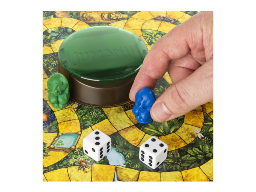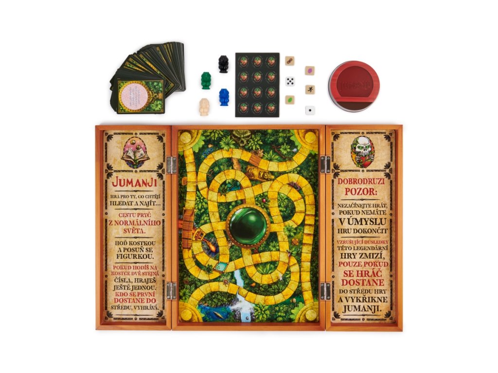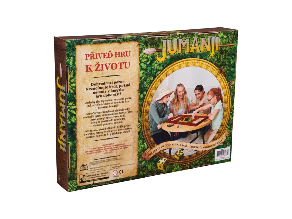 Stopující lvi. Dusající nosorožci. Chňapající krokodýli. V divokém světě Jumanji vás od nich všech dělí jen jediný hod kostkou. Vezměte figurku, hoďte osmistěnnou kostkou a procházejte džunglí. Otočte kartu s nebezpečím. Pomocí dekodéru odhalte tajnou zprávu a zjistěte, zda nedojde ke katastrofě. Vaši spoluhráči musí závodit s časem, aby vás zachránili. Džungle postupně začíná zaplňovat mřížku zkázy. Pokud se mřížka zaplní, džungle vás přemohla a vy i vaši spoluhráči jste prohráli. Pokud jste první, kdo se dostane doprostřed, než se mřížka zaplní, zakřičte Jumanji! a vyhráváte!Doplňkové parametry