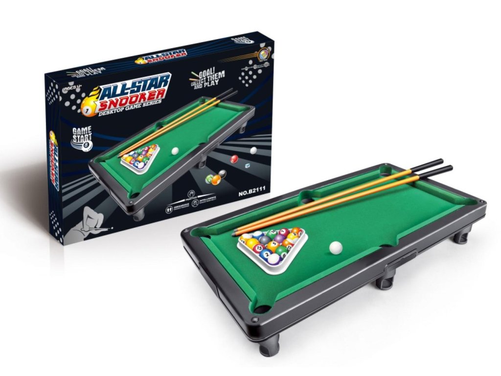 Tento malý kulečníkový stůl je určen pro zábavu a trénuje motoriku a koordinaci rukou a očí. Vybavený 2 tágy, koulemi, trojúhelníkem a křídou nestojí nic v cestě soubojům na tomto stole, které hráče nadchnou.Doplňkové parametry