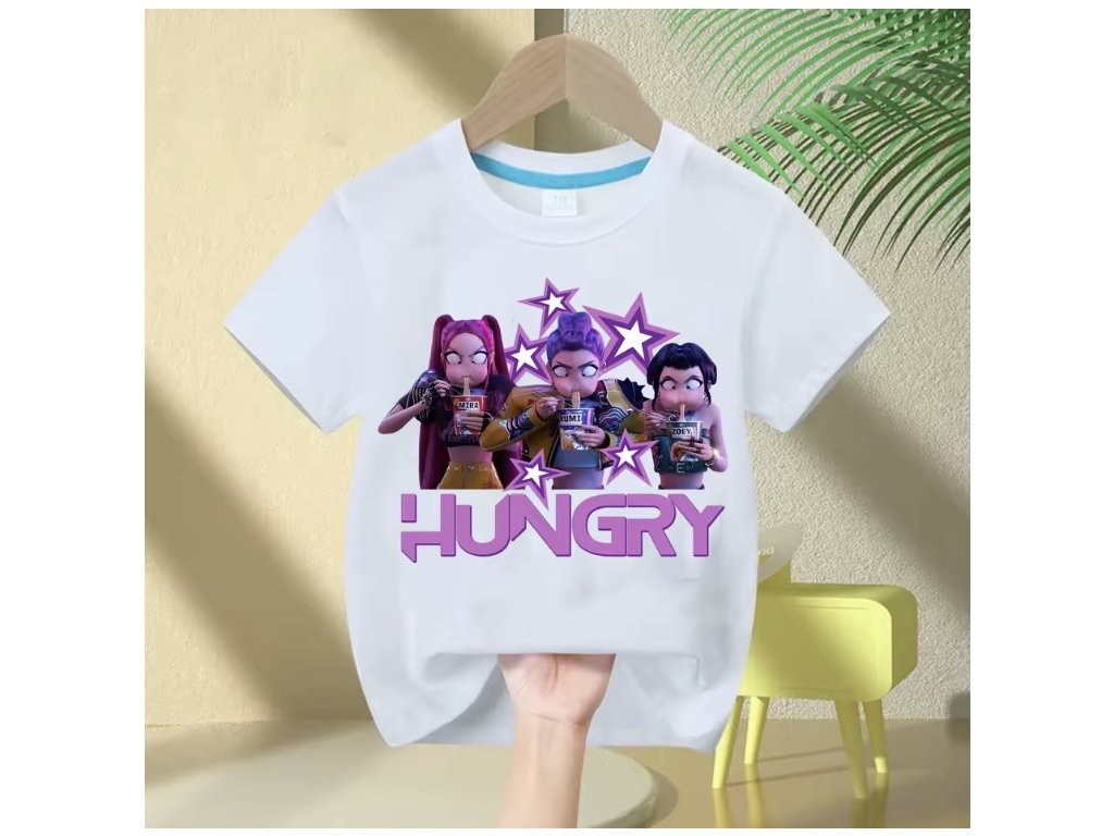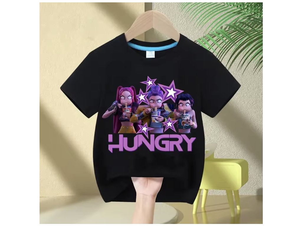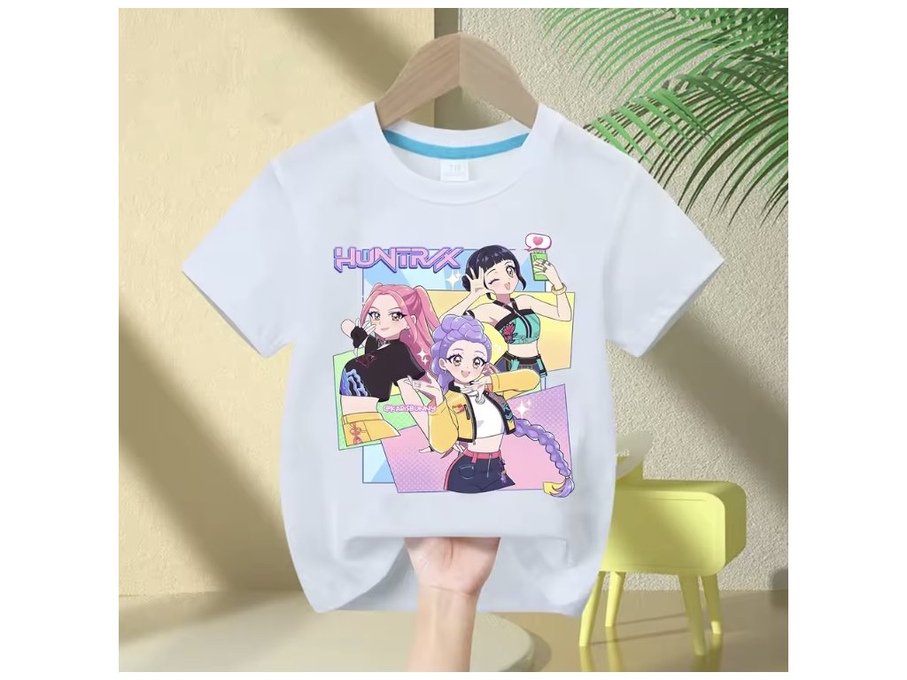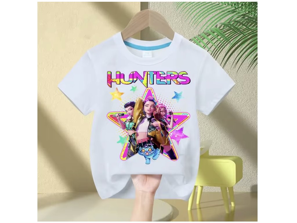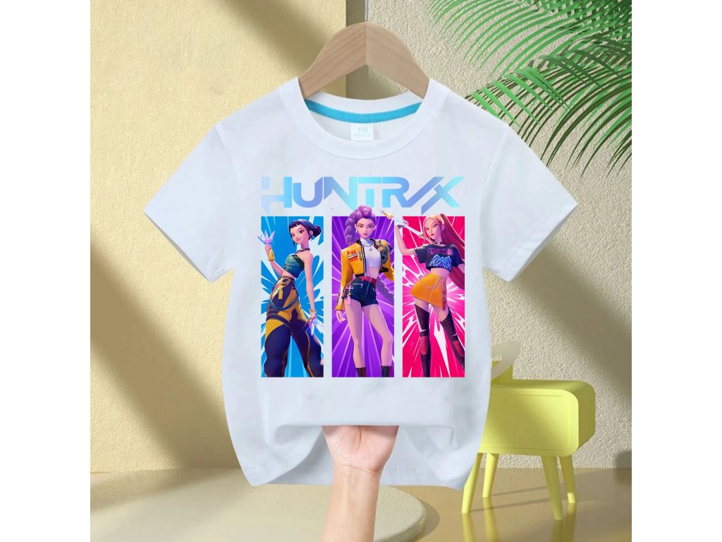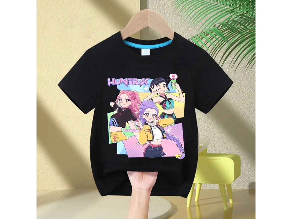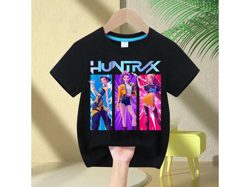 KPop Demon Hunters dětské tričko černé nebo bílé s potiskem (Huntrix), SKLAD
