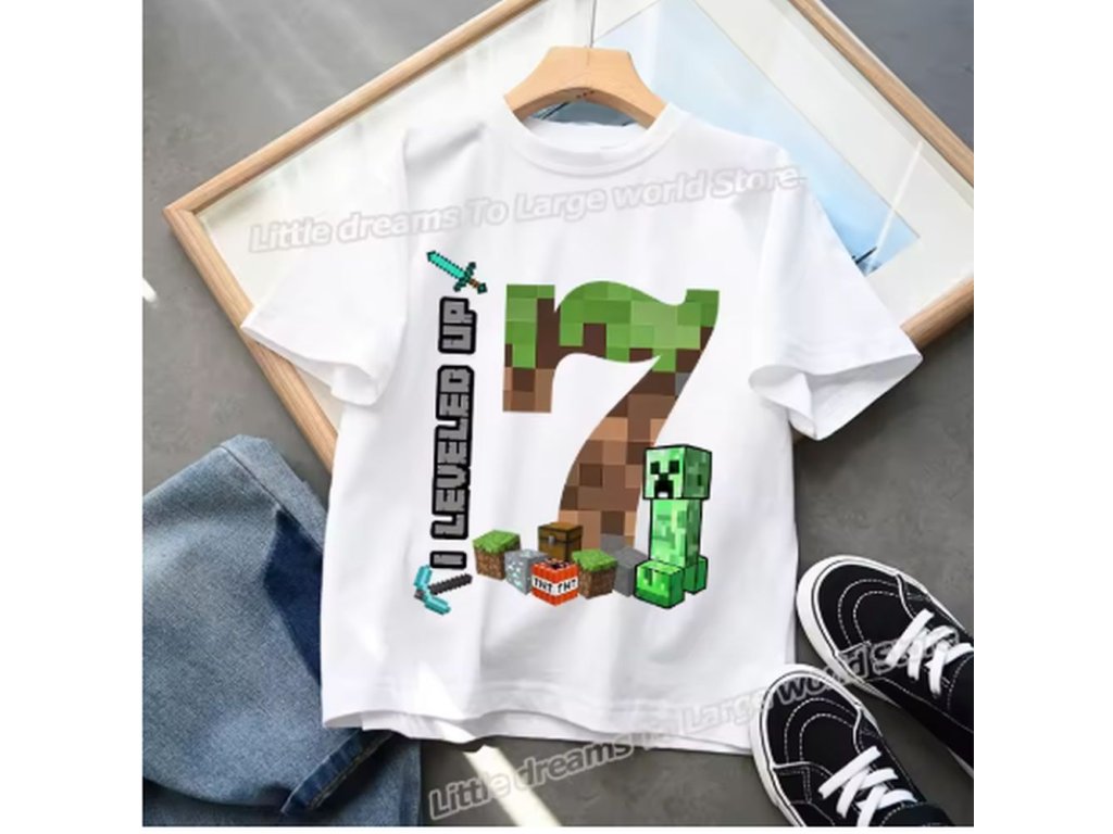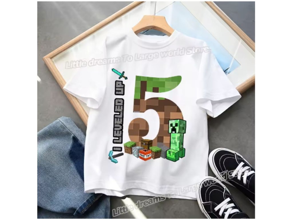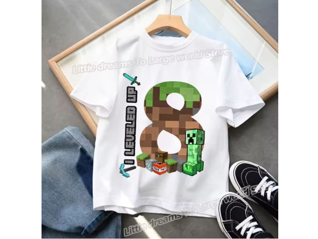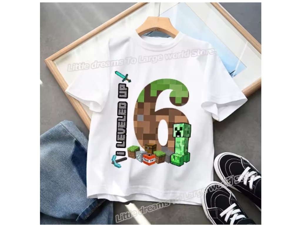 Narozeninové tričko s číslovkou "Minecraft" - bílé