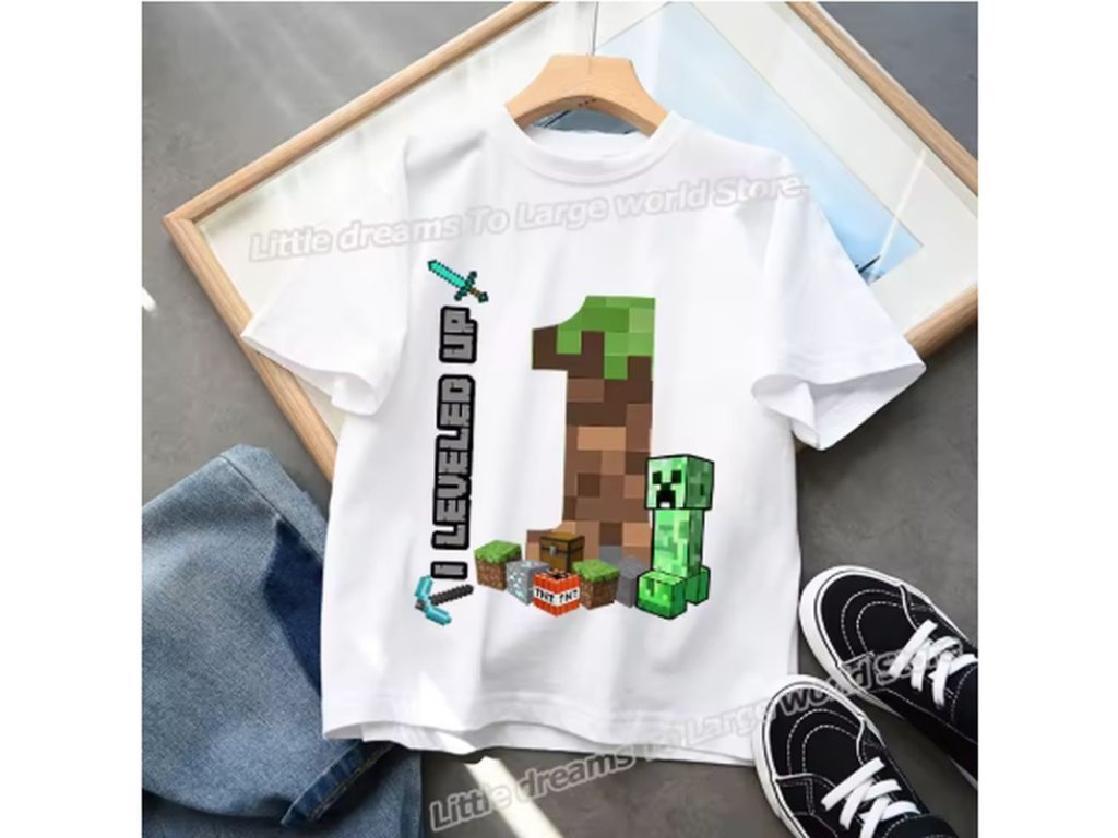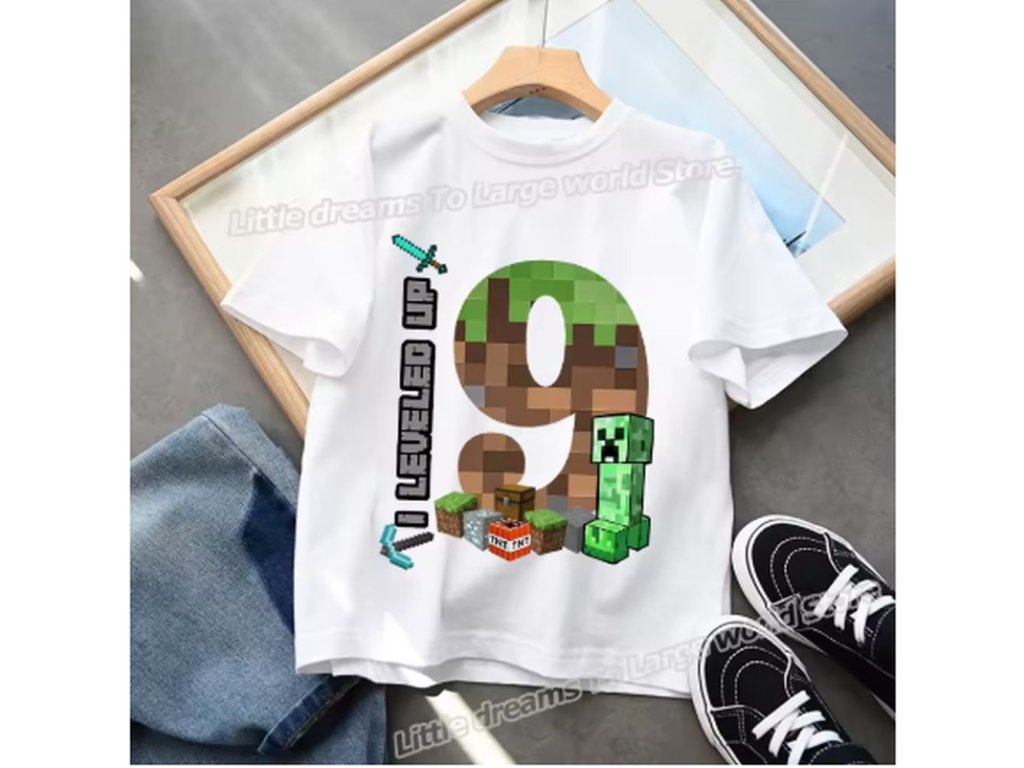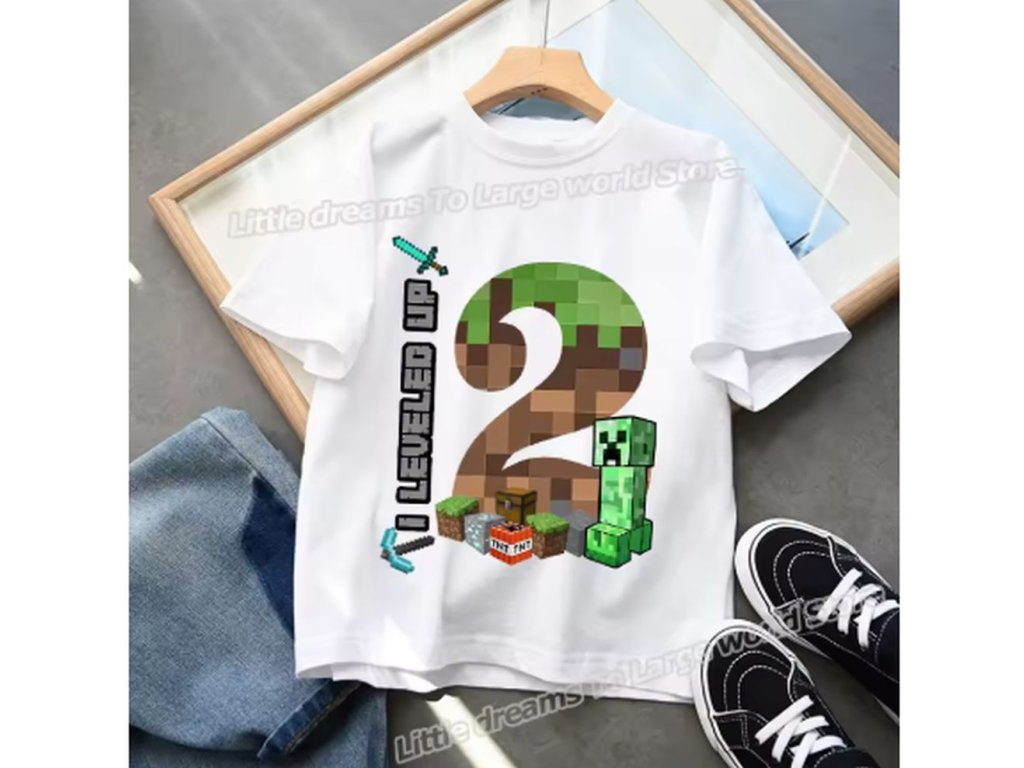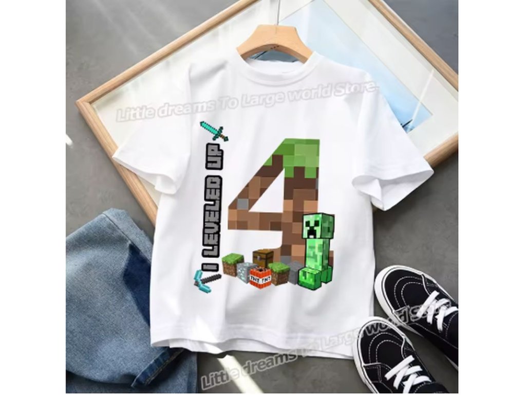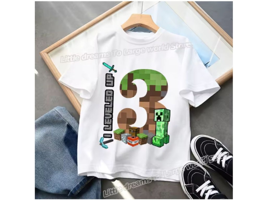 Narozeninové tričko s číslovkou "Minecraft" - bílé