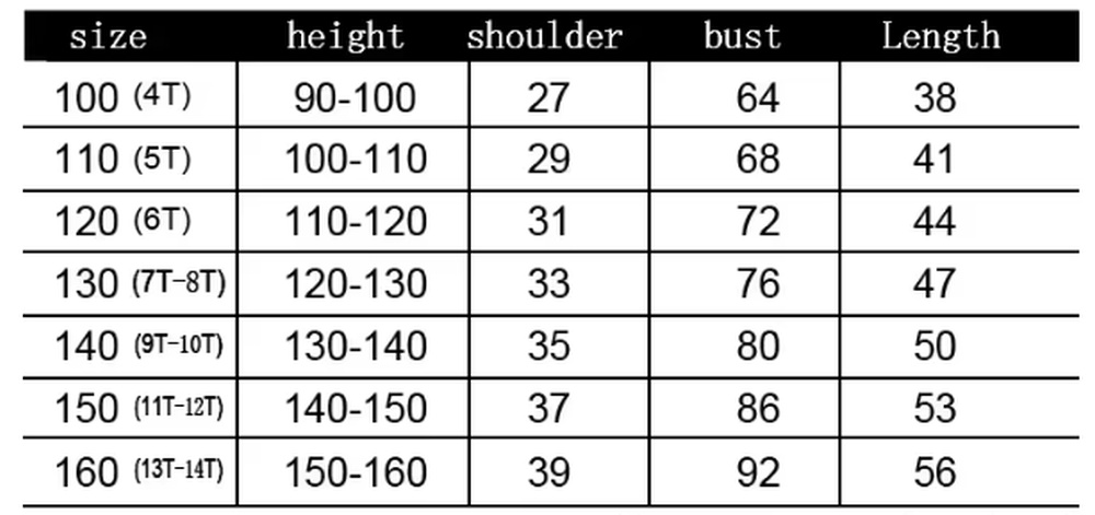 📏 Dostupné velikosti 100–160