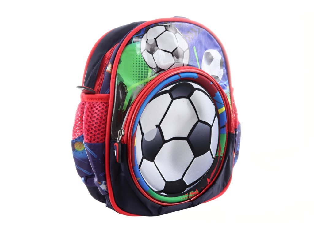 Látkový batoh s motivem fotbalu. Přední strana tvarovaná. Batoh nemá hrudní popruh. Baleno v sáčku. Rozměry batohu 22x25x8 cm. Výrobek není hračka.Doplňkové parametry