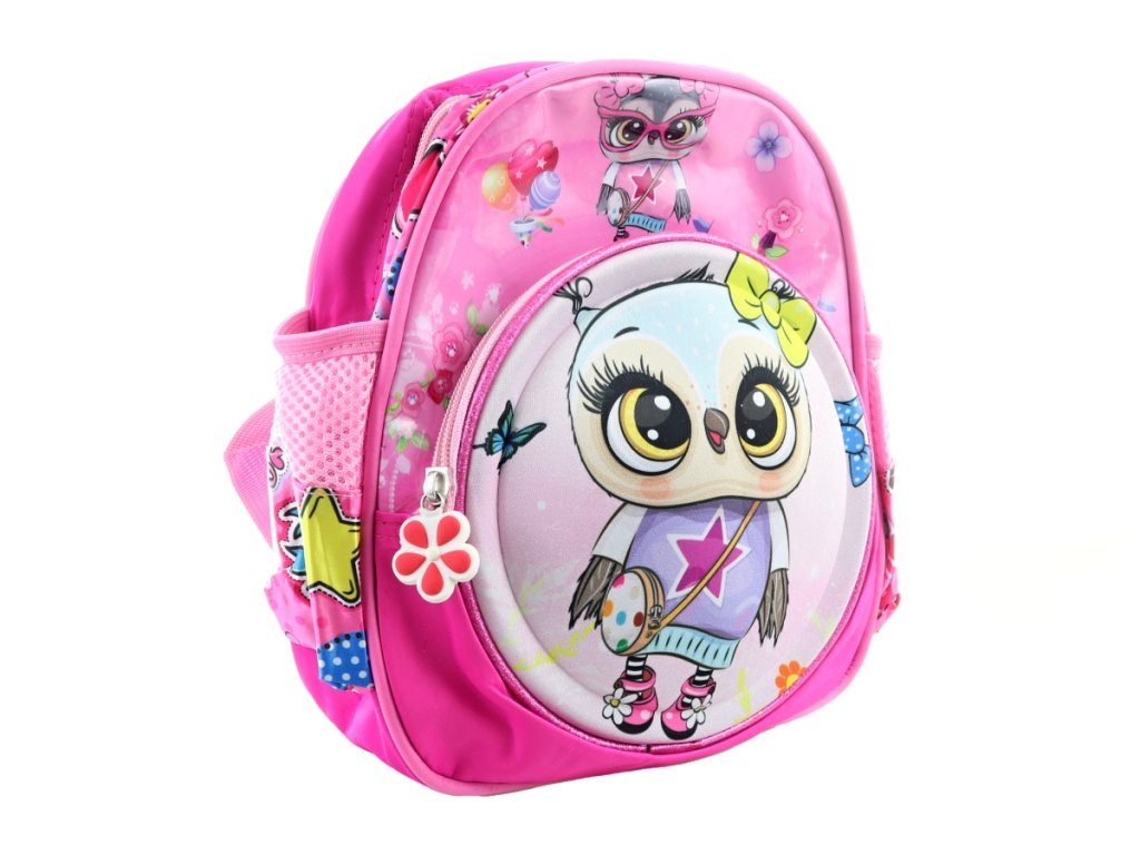 Látkový batoh se sovičkou. Přední strana tvarovaná. Batoh nemá hrudní popruh. Baleno v sáčku. Rozměry batohu 22x25x8 cm. Výrobek není hračka.Doplňkové parametry