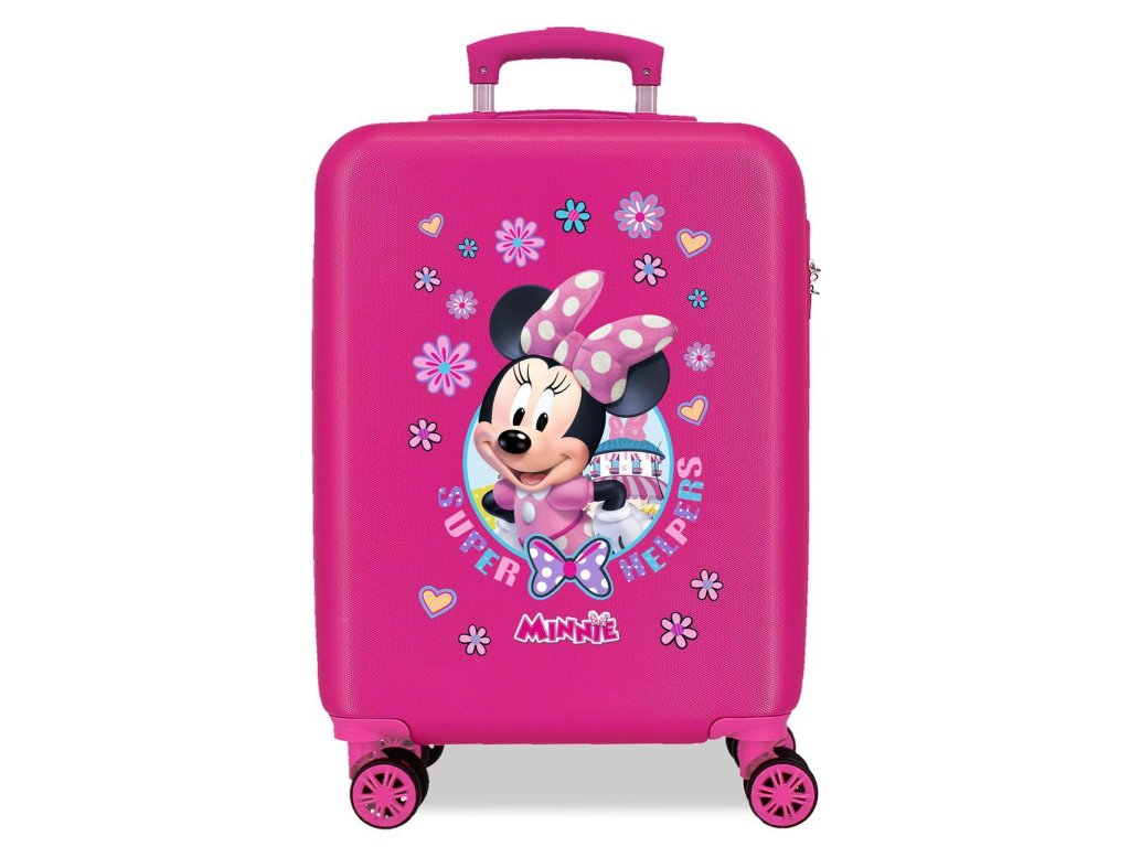 JOUMMABAGS Dětský skořepinový kufr s motivem Disney Minnie, 55 cm. Materiál: ABS plast, kvalitní skořepinový obal, odolný proti nárazům a poškození vnitřního obsahu kufru. Rozměry: 55x38x20 cm. Parametry: 4 dvojitá kolečka s rotací 360° pro pohodlné řízení. Výsuvná rukojeť. Uvnitř praktické dělení na 2 části, každá s pružnými popruhy. Integrovaný zámek s číselným kódem Rozměr umožňuje použití též jako kabinové zavazadlo u většiny leteckých společností. Objem 34 l. Hmotnost: 2,6 kg Výrobce: Joummabags Pol. Ind.Lágrillend 46870 Ontinyent, Spain joumma@joumma.comDoplňkové parametry