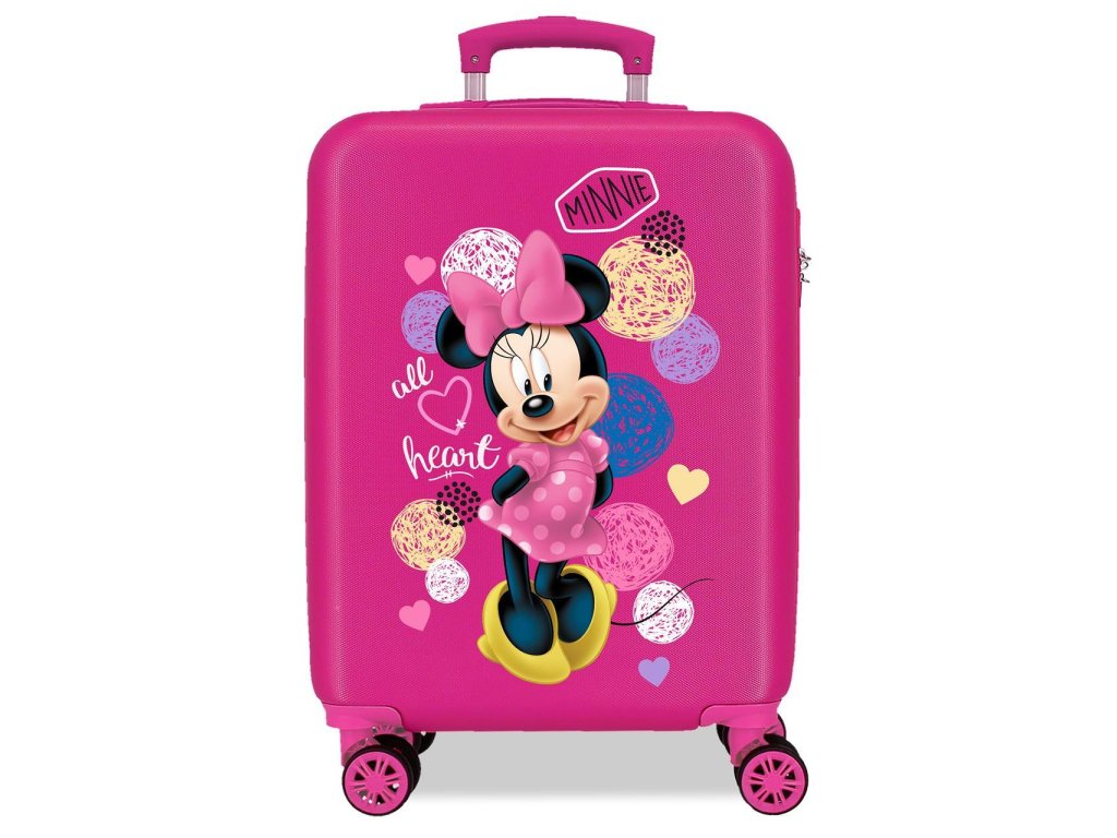 JOUMMABAGS Dětský skořepinový kufr s motivem Disney Minnie, 55 cm. Materiál: ABS plast, kvalitní skořepinový obal, odolný proti nárazům a poškození vnitřního obsahu kufru. Rozměry: 55x38x20 cm. Parametry: 4 dvojitá kolečka s rotací 360° pro pohodlné řízení. Výsuvná rukojeť. Uvnitř praktické dělení na 2 části, každá s pružnými popruhy. Integrovaný zámek s číselným kódem Rozměr umožňuje použití též jako kabinové zavazadlo u většiny leteckých společností. Objem 34 l. Hmotnost: 2,6 kg Výrobce: Joummabags Pol. Ind.Lágrillend 46870 Ontinyent, Spain joumma@joumma.comDoplňkové parametry